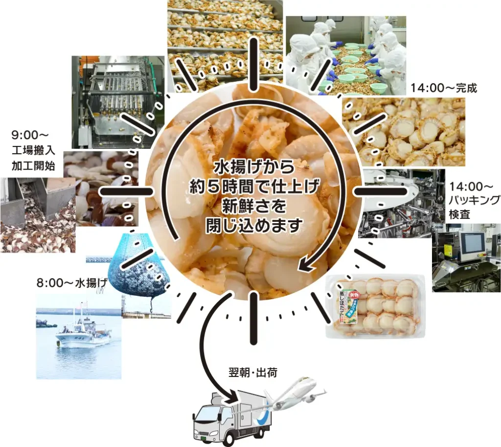 「蒸しホタテ」ができるまで